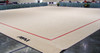 Floor system consists of: 61 floor panels with foam block supports, 16-1/2" (42cm) sloped foam border to surround the deck, then covered with a tan velour carpet to create a finished area of 48' 14.6m) square with red tape to locate the performing surface