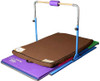 The Jr Bar Pro is a home training bar in a class above the rest. It is extremely well constructed and ideal for athletes of varying ages and skill levels. The sturdy design supports up to 125-pounds of weight without additional stabilization, giving gymnasts confidence when training new skills at home. This is a ''working'' load, which is representative of how your athlete will use it (swinging, circling, hanging, kipping). Be wary of competitors who list a high weight limit that is indicative of static load (hanging only) and not working load. This beast of a bar is engineered with stabilizers and hearty connections in all the right places. The crossbar on this hefty bar requires some additional matting underneath.
