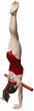 The Open Shoulder Trainer is a light, padded device that fits around an athletes shoulder and neck in order to remind the athlete of the open shoulder position necessary for skills that move through a handstand.